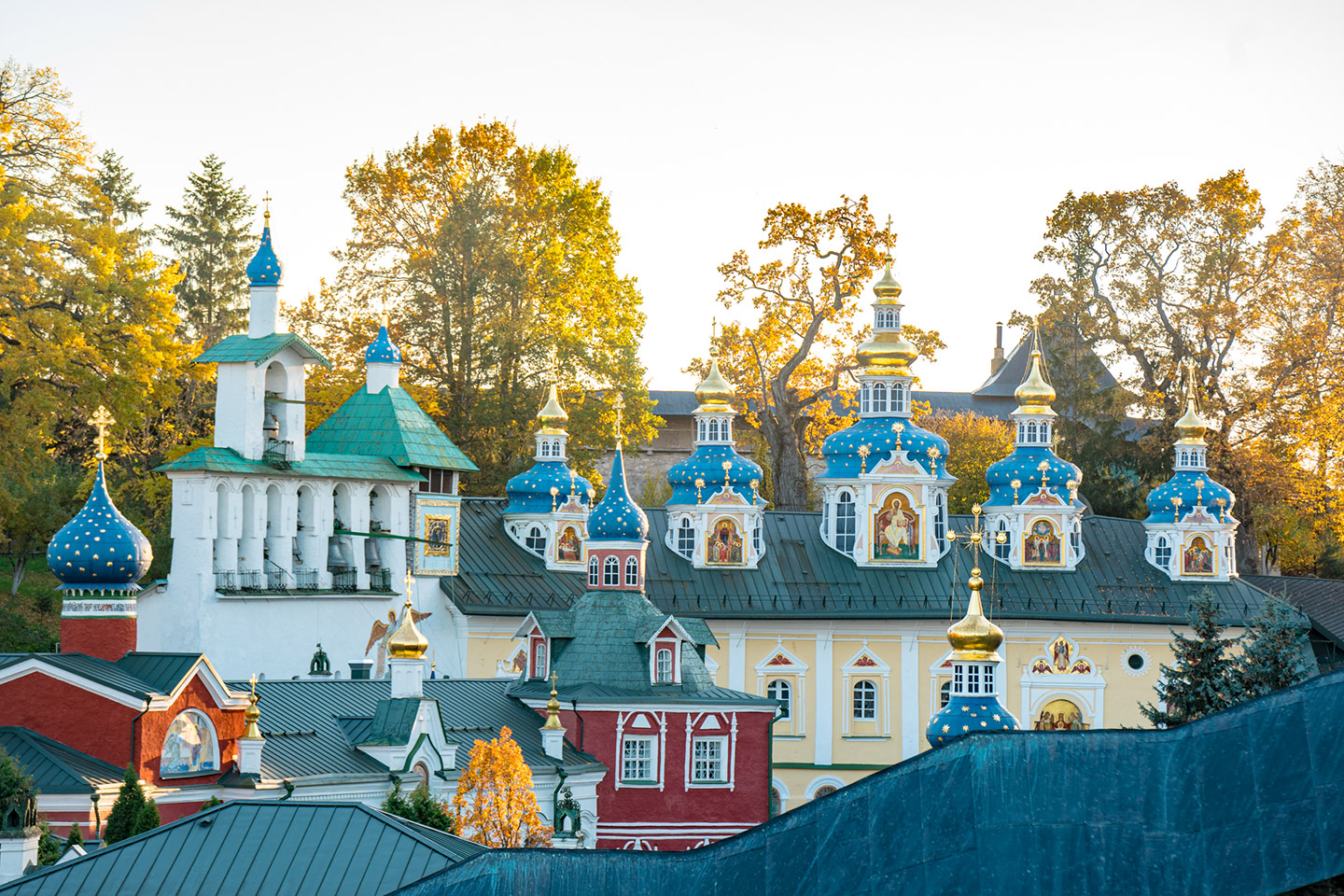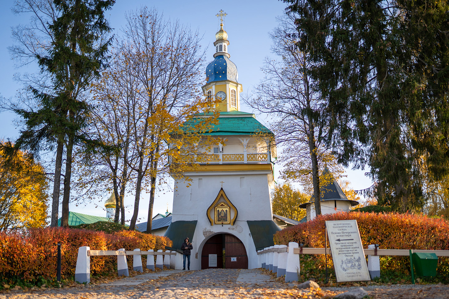 Tu viện Pskovo-Pechersky (Tu viện Đức Mẹ Thăng Thiên) được thành lập vào năm 1473, ban đầu là một nhà thờ nhỏ trong hang động. Qua nhiều thế kỷ, tu viện phát triển thành một pháo đài kiên cố với hệ thống tường thành bảo vệ. Đặc biệt, nơi đây chưa bao giờ bị đóng cửa ngay cả trong thời kỳ Liên Xô – điều hiếm thấy đối với các cơ sở tôn giáo ở Nga.